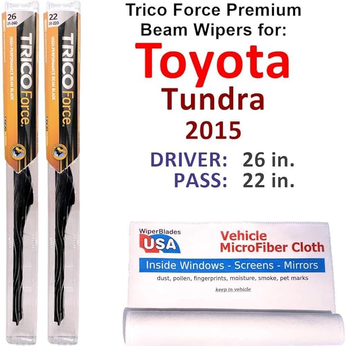 Amazon Com Beam Wiper Blades For 2015 Toyota Tundra Set Trico Tech Beam Blades Wipers Set Bundled With Microfiber Interior Car Cloth Automotive